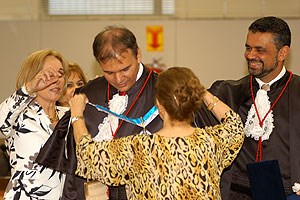 No início da sessão, Namyr Carlos de Souza foi conduzido ao Salão pelos desembargadores Alemer Ferraz Moulin e Benício Ferrari, respectivamente o mais antigo e o mais novo integrante do Tribunal de Justiça. Após assinar o termo de posse, o novo desembargador, acompanhado da mãe, Maria da Glória Barros de Souza, recebeu do presidente em exercício, o colar do mérito Judiciário. Um momento de muita emoção.